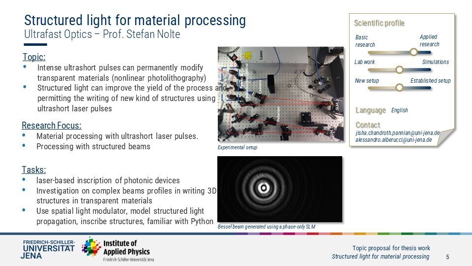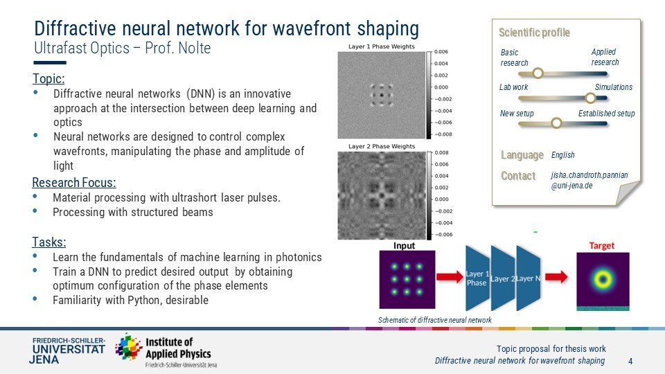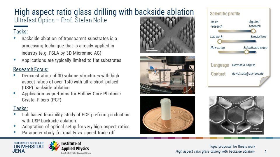 If you are interested to join one of the research groups, please contact the respective group leader directly. There is also the chance to study at our partner Institute Fraunhofer IOF.External link